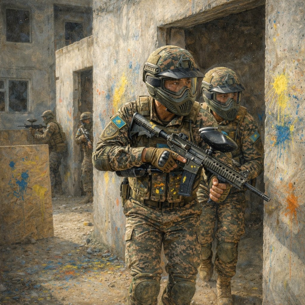 Казахстанские военнослужащие осваивают пейнтбол для повышения тактической подготовки