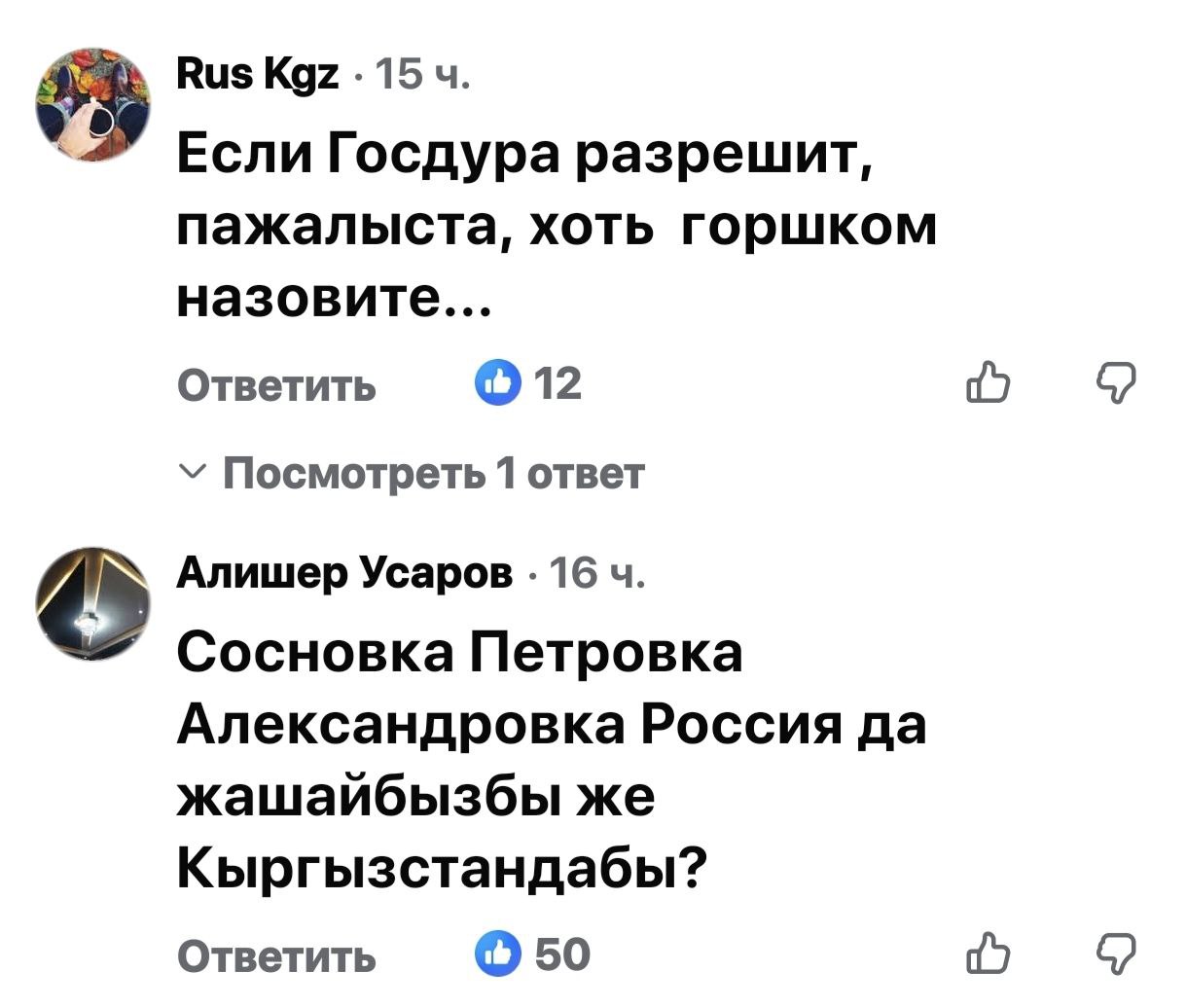 В соцсетях и вовсе требуют «искоренить колониальное прошлое и упразднить из нынешней истории все советские названия: Петровка, Ивановка, Гариловка, Константиновка, Виноградное, Октябрьский, Первомайский и т. д. — районы и села страны». Тех, кто смеет выступать против подобных инициатив, аргументируя финансовую сторону или необходимость сохранения истории, называют предателями и отправляют жить за пределы Кыргызстана. Такая тенденция растет с каждым днем. Складывается впечатление, что национальным оркестром, активизировавшимся с начала этого года, управляет какой-то серьезный дирижер.