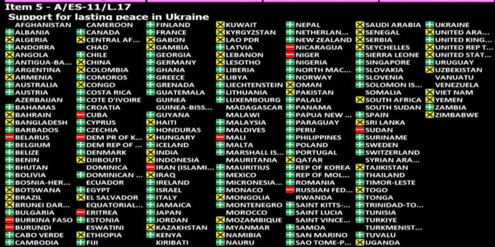 Генеральная Ассамблея ООН приняла резолюцию «Поддержка прочного мира на Украине», закрепляющую принципы суверенитета и территориальной целостности страны в её официальных границах. Инициаторами документа, помимо украинской стороны, выступили Великобритания, Франция, Дания, Греция и Латвия. Итоговое голосование распределилось следующим образом: 107 государств поддержали инициативу, 12 высказались против, а 51 страна предпочла воздержаться.
