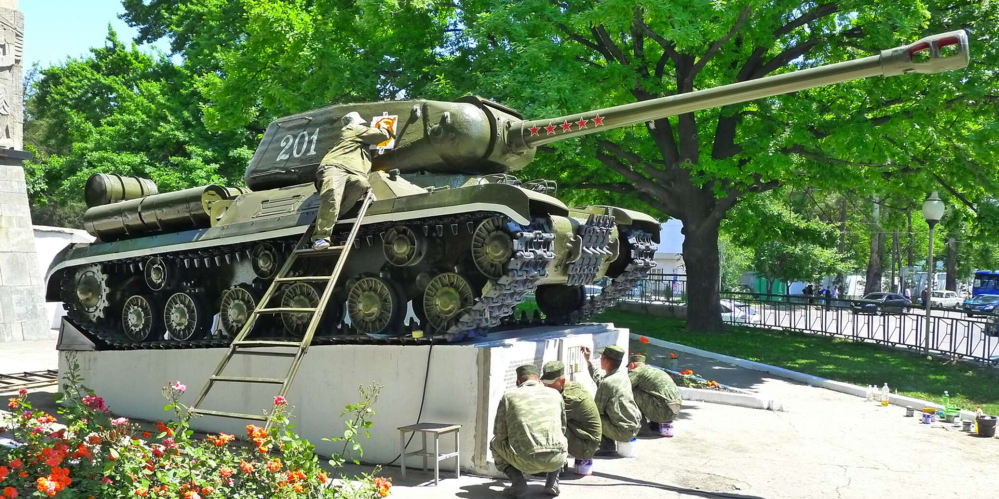 Сообщается, что были отремонтированы памятники легендарных танков ИС-2 и Т-34. Работы осуществляли специалисты ремонтно-восстановительного батальона военной базы. Они очистили прилегающие к ним территории от травы и мусора, с помощью авторазливочных цистерн помыли постаменты от пыли и грязи, провели их текущий ремонт.