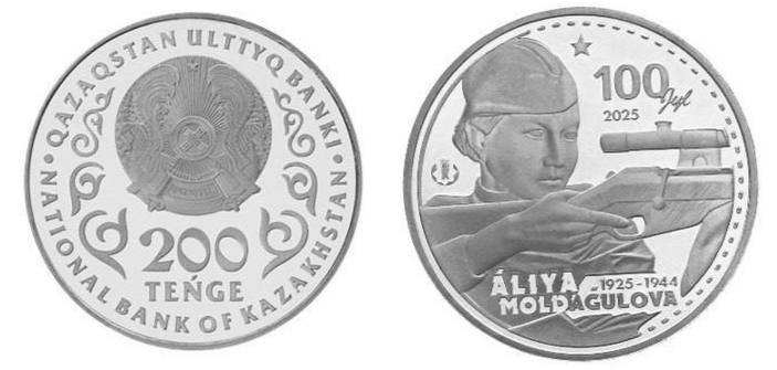 Национальный банк Республики Казахстан объявил о выпуске коллекционной монеты, приуроченной к 100‑летию со дня рождения Героя Советского Союза Али́и Молдагу́ловой — легендарной снайперши, которая в 18 лет уничтожила почти 80 гитлеровцев во время Великой Отечественной войны.