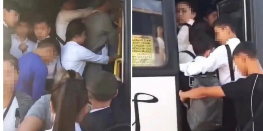 В интернете появились видеозаписи, на которых видно, как школьники в селе Новопавловка (около Бишкека) испытывают трудности с посадкой в переполненные автобусы.